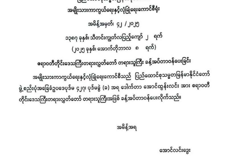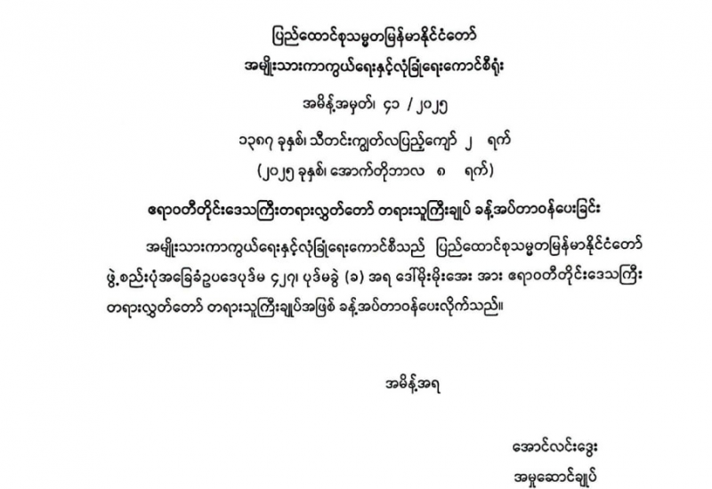 မန္တလေးတိုင်းဒေသကြီးအမျိုးသားလွှတ်တော် အချိုးကျကိုယ်စားပြုစနစ်(PR) မဲဆန္ဒနယ်များ ပြင်ဆင်သတ်မှတ်ကြေညာ 08/31/2025