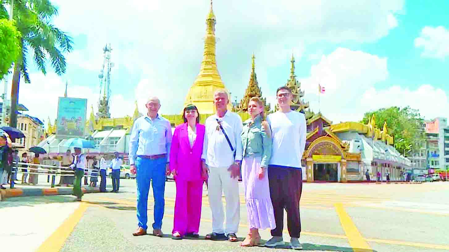 မြန်မာနိုင်ငံ၌ ရောက်ရှိနေသည့် ဘယ်လာရုစ်နိုင်ငံမှ တေးဂီတပညာရှင်နှင့် တေးရေး/တေးဆို Mr.Vladimir Sukolinsky ဦးဆောင်သော ဖျော်ဖြေရေးအဖွဲ့သည် ယနေ့နံနက်ပိုင်းတွင် ရန်ကုန်မြို့တွင်းရှိ အထင်ကရနေရာများကို သွားရောက်လေ့လာကြည့်ရှုကြသည်။