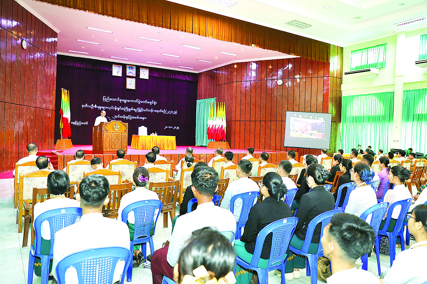 ပြည်ထောင်စုရွေးကောက်ပွဲကော်မရှင်ရုံးနှင့် မြို့နယ်ရွေးကောက်ပွဲကော်မရှင်အဖွဲ့ခွဲရုံးအသီးသီးတို့တွင် တာဝန်ထမ်းဆောင်ကြမည့် ဒုတိယဦးစီးမှူးများ လုပ်ငန်းခွင်အကြို စွမ်းရည်မြှင့်သင်တန်း အမှတ်စဉ် ( ၂ / ၂၀၂၅ ) သင်တန်းဖွင့်ပွဲကို ယနေ့နံနက်ပိုင်းတွင် ပုဗ္ဗသီရိမြို့နယ် ဆင်ဖြူရှင်ခန်းမ၌ ကျင်းပသည်။
