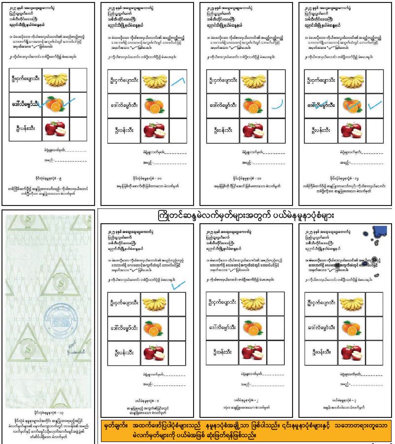 မဲဆန္ဒရှင်များက ဘောလ်ပင်ဖြင့် အမှန်အမှတ်အသားရေးခြစ်၍ ဆန္ဒပြုထားသည့် ကြိုတင်ဆန္ဒမဲ လက်မှတ်များ အတွက်ခိုင်လုံမဲနမူနာပုံစံများနှင့် ပယ်မဲနမူနာပုံစံများထုတ်ပြန်ကြေညာခြင်း 11/04/2025