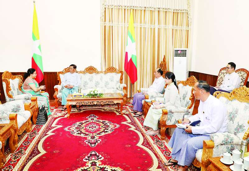 ပြည်ထောင်စုဝန်ကြီး ဦးသန်းဆွေ မြန်မာနိုင်ငံဆိုင်ရာ သီရိလင်္ကာသံအမတ်ကြီး မစ္စစ် ပွန်နမ်ပီရူမား အာရာချ်ချီဂီ ပရာဘာရှီနီ ပွန်နမ်ပီရူမားအား လက်ခံတွေ့ဆုံ