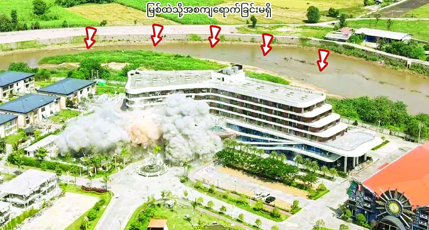 နိုင်ငံတော်အစိုးရအနေဖြင့် မြန်မာ-ထိုင်း-တရုတ် သုံးပွင့်ဆိုင် ပူးပေါင်းဆောင်ရွက်မှုပုံစံ (Trilateral Cooperation)ဖြင့် ပူးပေါင်းနှိမ်နင်းလျက်ရှိပြီး KNLA ၊ KNU လက်နက်ကိုင်အကြမ်းဖက်အဖွဲ့အစည်းများနှင့် NUG လက်အောက်ခံ PDF အကြမ်းဖက်အဖွဲ့ဝင်များ ခေတ္တစိုးမိုးထိန်းချုပ်ထားသည့် မြဝတီ-မဲ့ထော်သလေး (KK Park) နယ်မြေအတွင်းသို့ ပြီးခဲ့သည့်အောက်တိုဘာလအတွင်း၌ လုံခြုံရေးတပ်ဖွဲ့ဝင်များဖြင့် အကြမ်းဖက်သောင်းကျန်းသူနှိမ်နင်းမှုစစ်ဆင်ရေးဖြင့် ဝင်ရောက်ရှင်းလင်းခြင်းများ ဆောင်ရွက်ခဲ့ကာ နယ်မြေစိုးမိုးရေးလုပ်ငန်းများကို ဆောင်ရွက်နိုင်ခဲ့ပြီဖြစ်သည်။ ထိုသို့ဆောင်ရွက်ခဲ့ရာတွင် Online လိမ်လည်လောင်းကစားမှုများ ယင်းဒေသတွင် လုံးဝပြန်လည်အခြေမချနိုင်စေရေး၊ ဒုစရိုက်လုပ်ငန်းများ ထပ်မံမလုပ်ဆောင်နိုင်စေရေးအတွက် ယင်းဒေသတွင် တရားမဝင် ဆောက်လုပ်ထားသည့် အဆောက်အအုံများအား ဇုန်အလိုက် အပြီးတိုင်ဖျက်ဆီးဖြိုချမှုများ ဆောင်ရွက်လျက်ရှိသည်။ ဇုန် ၃ ခုတွင် စုစုပေါင်းအဆောက်အုံ ၆၃၅ လုံးရှိပြီး နိုဝင်ဘာလ ၁၇ ရက်နေ့အထိ အဆောက်အအုံ ၁၄၈ လုံးကို ၁၀၀ ရာခိုင်နှုန်း ဖြိုချဖျက်ဆီးခဲ့ပြီးဖြစ်သည်။ ကျန်ရှိနေသေးသည့် အဆောက်အအုံ ၄၈၇ လုံးကိုလည်း ဆက်လက်ဖြိုချရှင်းလင်းခြင်းများ ဆောင်ရွက်သွားမည်ဖြစ်ပြီး ဖြိုချဖျက်ဆီးခြင်းများ ဆောင်ရွက်ရာတွင် ယာဉ်ယန္တရားများဖြင့် စနစ်တကျ ဖြိုချဖျက်ဆီးခြင်း၊ အဆင့်မြင့်နည်းပညာသုံး မိုင်းဖောက်ခွဲဖျက်ဆီးခြင်းနည်းပညာ အသုံးပြု၍ စနစ်တကျဖောက်ခွဲဖျက်ဆီးခြင်းတို့ဖြင့် ဆောင်ရွက်လျက်ရှိသည်။ ထိုသို့ ဆောင်ရွက်ခဲ့ရာတွင် တစ်ဖက်နိုင်ငံနှင့် နီးကပ်နေသည့်နေရာဖြစ်သဖြင့် အဆောက်အဦအပျက်အစီးအပိုင်းအစများ တစ်ဖက်နိုင်ငံအတွင်းသို့ ကျရောက်မှုမရှိစေရေး စနစ်တကျဆောင်ရွက်ခဲ့ကြောင်း Video မှတ်တမ်းများအရ တွေ့ရှိနိုင်သည်။ တစ်ဖက်နိုင်ငံက ကန့်ကွက်ခဲ့သည့်အတွက်လည်း ဖောက်ခွဲဖျက်ဆီးမှု Video မှတ်တမ်းဖိုင်များကို ၎င်းနိုင်ငံသို့ တရားဝင်မှတ်တမ်းပေးပို့ခဲ့ပြီး ဖြစ်သည်။