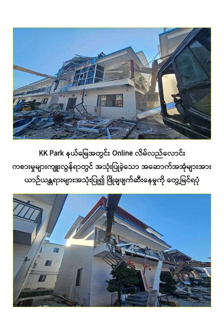 KK Park နယ်မြေအတွင်း Online လိမ်လည်မှုနှင့် လောင်းကစားမှုများ ကျူးလွန်ရာတွင် အသုံးပြုခဲ့သည့် အဆောက်အအုံများ ထပ်မံဖြိုချဖျက်ဆီးပြီး တရားမဝင်ပြည်ပနိုင်ငံသားများအား ထပ်မံဖမ်းဆီးထိန်းသိမ်းနိုင်ခဲ့
