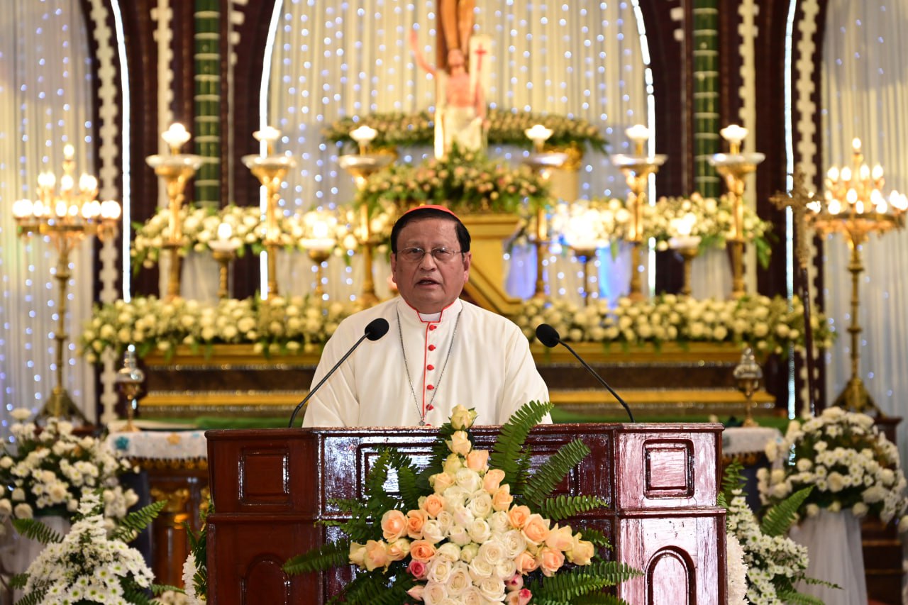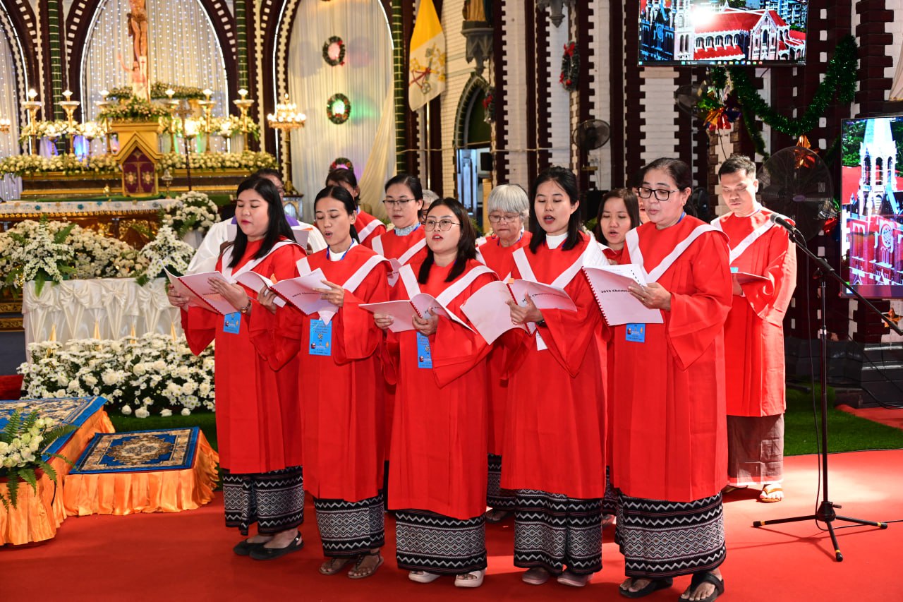 ထို့နောက် မြန်မာနိုင်ငံခရစ်ယာန်သာသနာပြန့်ပွားမှုပူးပေါင်းဆောင်ရွက်ရေးအဖွဲ့ချုပ်ဥက္ကဋ္ဌ သိက္ခာတော်ရ ဆရာဒေါက်တာမျိုးမြင့်ဦး ဦးဆောင်၍ တက်ရောက်လာကြသည့် ဧည့်ပရိတ်သတ်များက မွေးနေ့တော်ပွဲ အတုံ့အပြန်ဖတ်ကြားခြင်းကိုလည်းကောင်း၊ Sister ရူဖီးက သမ္မာကျမ်းစာဖတ်ကြားခြင်းကိုလည်းကောင်း၊ ခရစ္စမတ်ဓမ္မဒေသနာချီးမြှင့်ဟောကြားခြင်းကို ဂိုဏ်းချုပ်ဆရာတော်ကြီး ကာဒီနယ်ချားလ်စ်ဘိုကလည်းကောင်း အသီးသီးဆောင်ရွက်ကြသည်။