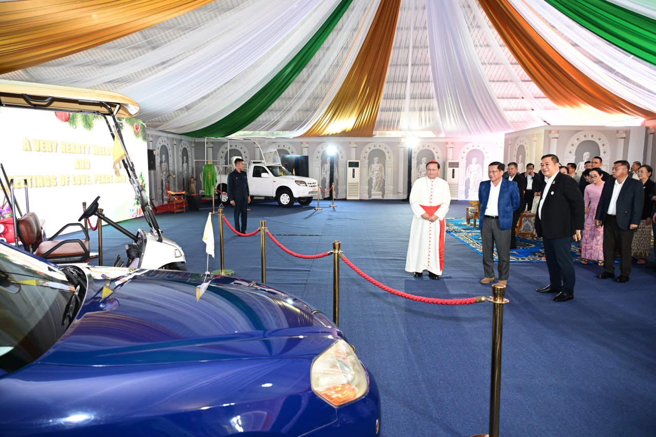 ထို့နောက် နိုင်ငံတော်ယာယီသမ္မတ နိုင်ငံတော်လုံခြုံရေးနှင့်အေးချမ်းသာယာရေးကော်မရှင်ဥက္ကဋ္ဌနှင့် ဇနီး၊ အဖွဲ့ဝင်များသည် စိန့်မေရီကာသီဒြယ်ကက်သလစ်ဘုရားကျောင်းတော်ကြီးအတွင်းရှိ ပုပ်ရဟန်းမင်းကြီး ဖရန်စစ် မြန်မာနိုင်ငံသို့ လာရောက်စဉ် အသုံးပြုခဲ့သည့် လှည့်လည်ယာဉ်များကို ကြည့်ရှုပြီး ပုပ်ရဟန်း မင်းကြီးဖရန်စစ် ၂၀၁၇ ခုနှစ်၊ နိုဝင်ဘာလအတွင်း မြန်မာနိုင်ငံသို့ လာရောက်စဉ် ဆောင်ရွက်ခဲ့မှုမှတ်တမ်းဗီဒီယိုနှင့် နိုင်ငံတော်ယာယီသမ္မတ နိုင်ငံတော်လုံခြုံရေးနှင့်အေးချမ်းသာယာရေးကော်မရှင်ဥက္ကဋ္ဌ ဗိုလ်ချုပ်မှူးကြီး မင်းအောင်လှိုင်နှင့် ကက်သလစ် ဂိုဏ်းချုပ်သာသနာ၊ ဂိုဏ်းချုပ်ဆရာတော်ကြီး ကာဒီနယ်ချားလ်စ်ဘိုတို့၏ ခရစ္စမတ်ဆုတောင်းပွဲများနှင့် မိတ်သဟာယပွဲတော်များ ကျင်းပပြုလုပ်ခဲ့မှု မှတ်တမ်းဗီဒီယိုအား ကြည့်ရှုကြသည်။