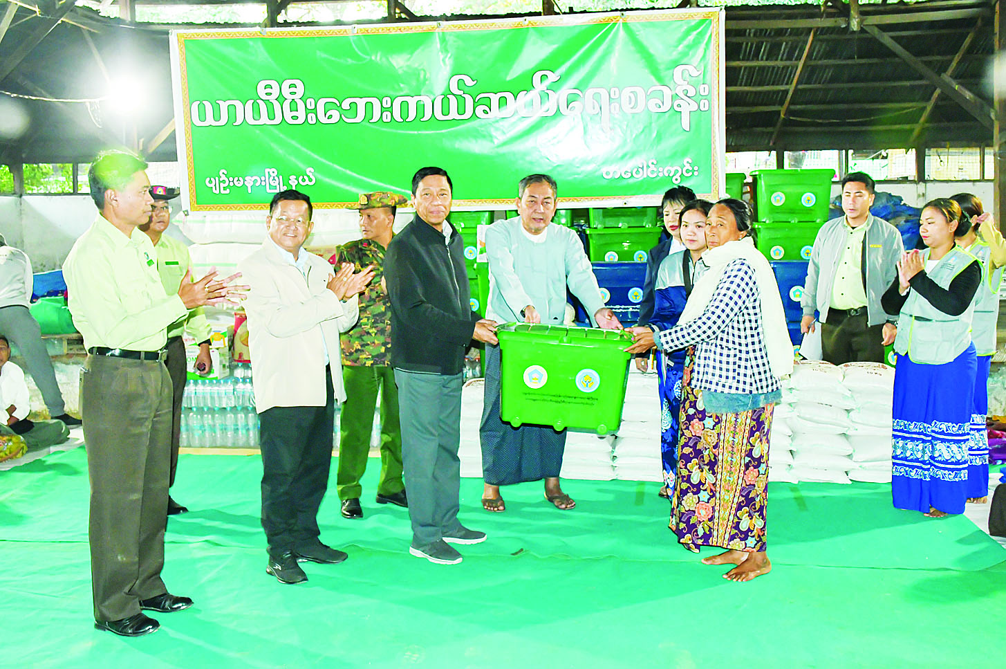 တွေ့ဆုံစဉ် ပြည်ထောင်စုဝန်ကြီးက မီးဘေးသင့်အိမ်ထောင်စု ၆၀၊ လူဦးရေ ၃၀၈ ဦးအတွက် လူမှုဝန်ထမ်း၊ ကယ်ဆယ်ရေးနှင့်ပြန်လည်နေရာချထား ရေးဝန်ကြီးဌာနက ထောက်ပံ့သောဆန်ရိက္ခာဖိုး၊ အိမ်ပျက်စီးမှုထောက်ပံ့ကြေး၊ အိမ်အသုံးအဆောင်ပစ္စည်းများ၊ တစ်ကိုယ်ရေသန့်ရှင်းရေးသုံးပစ္စည်းများ၊ ရေသန့်နှင့် ခေါက်ဆွဲခြောက်ထုပ်များ စုစုပေါင်းငွေကျပ် ၂၅၇ သိန်းခန့်တန်ဖိုးရှိ ငွေနှင့်ပစ္စည်းများကို အိမ်ထောင်စုအလိုက်၊ လူဦးရေအလိုက် ထောက်ပံ့ပေးအပ်သည်။
