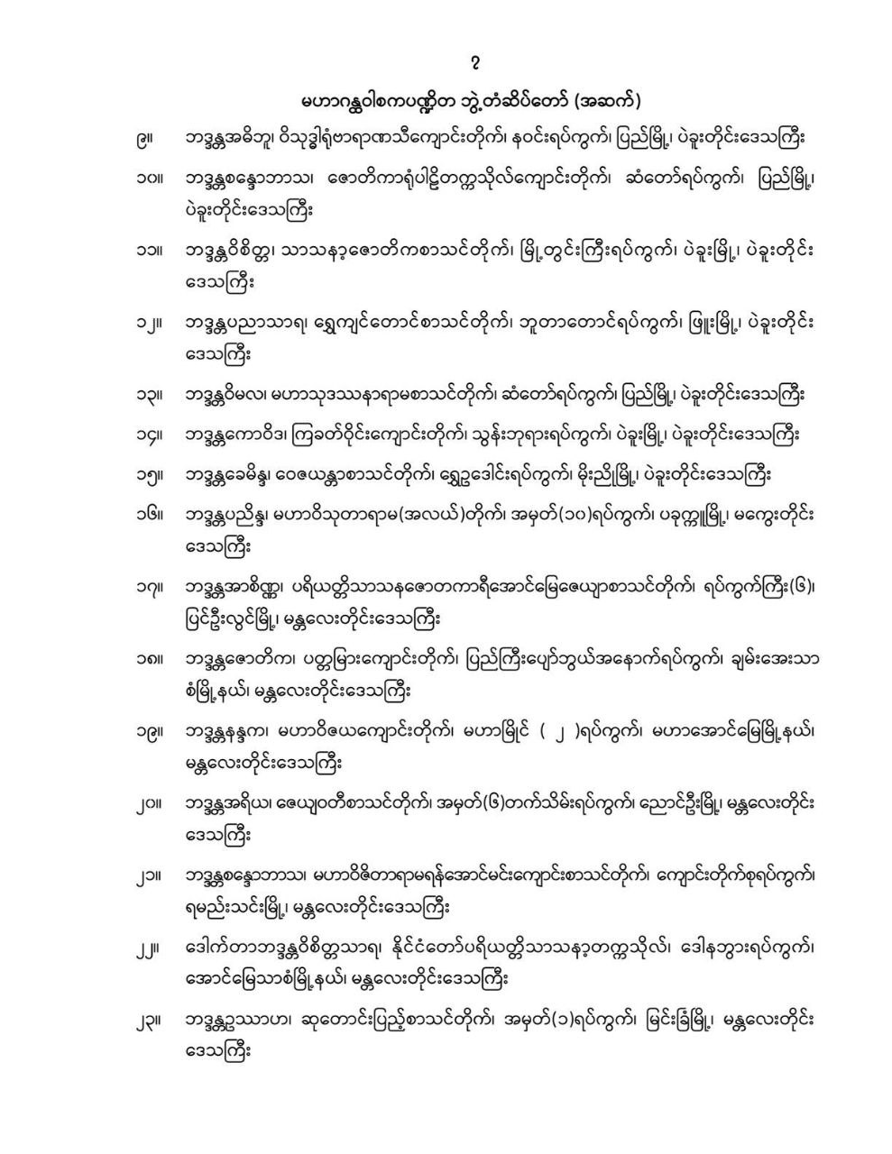ဝန်ကြီးဌာန ကြေညာချက်များ