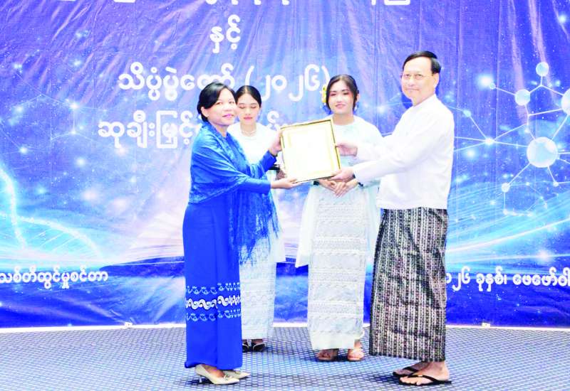ထို့နောက် ဒုတိယဝန်ကြီးက သင်တန်းသား သင်တန်းသူ ဆရာ ဆရာမများကို ထောက်ပံ့ငွေ ပေးအပ်ရာ ကျောင်းပြင်ပနှင့်တစ်သက်တာပညာရေးဦးစီးဌာန ညွှန်ကြားရေးမှူးချုပ်က လက်ခံရယူသည်။