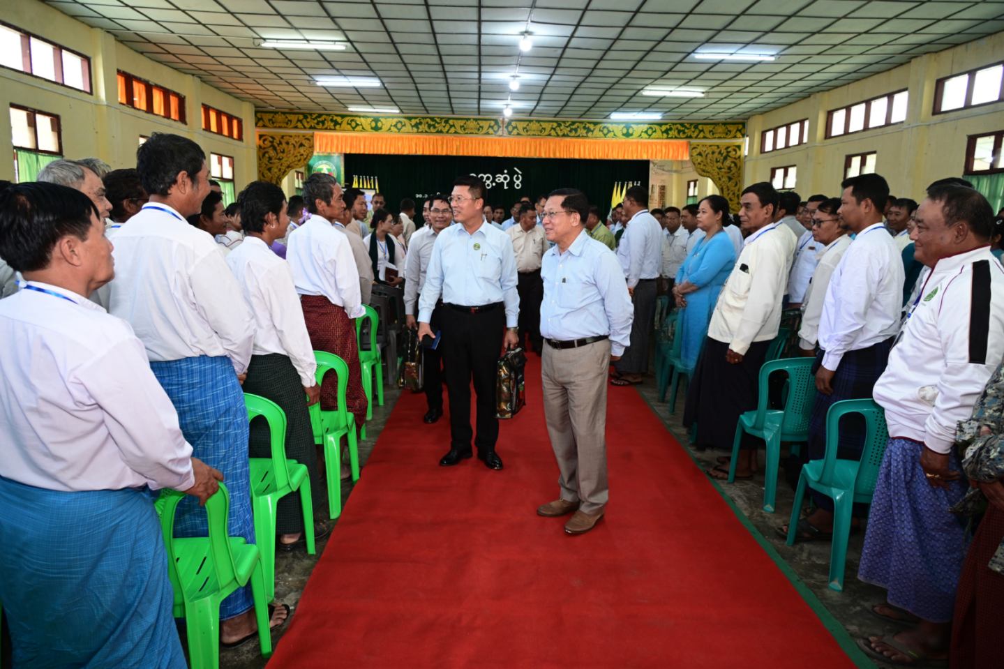 ထို့နောက် နိုင်ငံတော်ယာယီသမ္မတ နိုင်ငံတော်လုံခြုံရေးနှင့် အေးချမ်းသာယာရေးကော်မရှင်ဥက္ကဋ္ဌသည် တွေ့ဆုံပွဲအခမ်းအနားသို့ တက်ရောက်လာကြသည့် ဌာနဆိုင်ရာတာဝန်ရှိသူများ၊ မြို့မိမြို့ဖများနှင့် ဒေသခံပြည်သူများအား ရင်းရင်းနှီးနှီးနှုတ်ဆက်သည်။