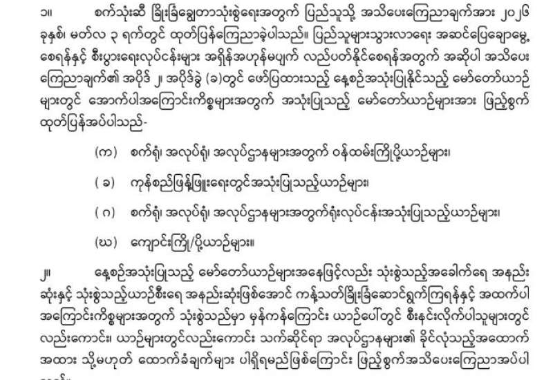 စက်သုံးဆီ ခြိုးခြံချွေတာသုံးစွဲရေးအတွက် ပြည်သူသို့ အသိပေးကြေညာချက်အား ဖြည့်စွက်ထုတ်ပြန်ခြင်း