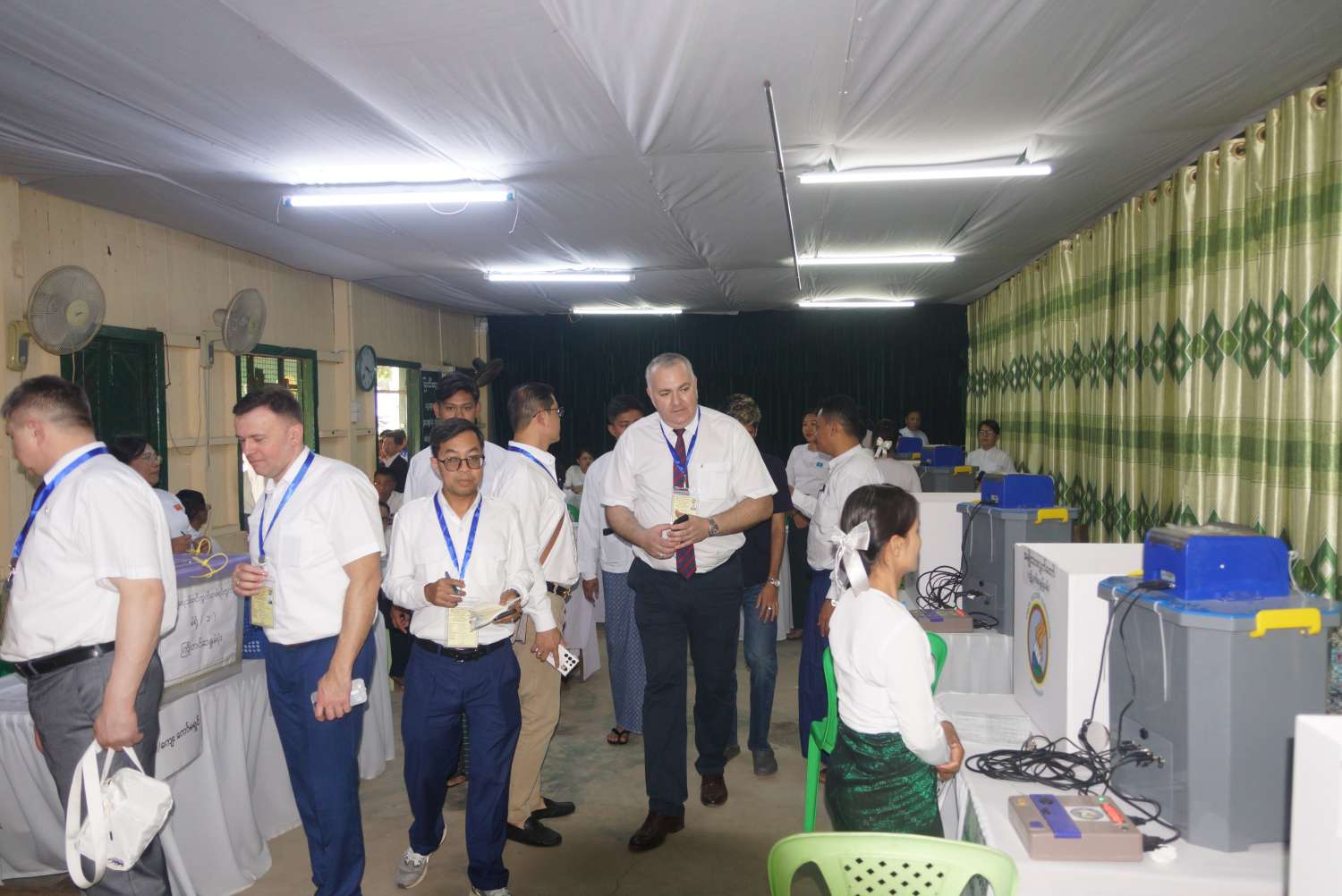 နိုင်ငံတကာရွေးကောက်ပွဲ စောင့်ကြည့်လေ့လာရေးအဖွဲ့များဖြစ်သည့် ဘယ်လာရုစ်သမ္မတနိုင်ငံမှ ကိုယ်စားလှယ်အဖွဲ့၊ ကမ္ဘောဒီးယားနိုင်ငံရွေးကောက်ပွဲကော်မရှင်မှကိုယ်စားလှယ်အဖွဲ့၊ နီပေါနိုင်ငံရွေးကောက်ပွဲကော်မရှင်မှကိုယ်စားလှယ်အဖွဲ့၊ အင်ဒိုနီးရှားနိုင်ငံ ရွေးကောက်ပွဲကော်မရှင်မှကိုယ်စားလှယ်အဖွဲ့၊ ဗီယက်နမ်ဆိုရှယ်လစ်သမ္မတနိုင်ငံမှကိုယ်စားလှယ်အဖွဲ့၊ နီကာရာဂွါနိုင်ငံမှ ကိုယ်စားလှယ်အဖွဲ့၊ အိန္ဒိယနိုင်ငံမှကိုယ်စားလှယ်နှင့် International Conference of Asian Political Parties(ICAPP)အဖွဲ့မှ ကိုယ်စားလှယ်များသည် ပြည်ထောင်စုရွေးကောက်ပွဲကော်မရှင်ရုံးမှ တာဝန်ရှိသူများ၊ ရန်ကုန်တိုင်းဒေသကြီး ရွေးကောက်ပွဲကော်မရှင်အဖွဲ့ခွဲမှ တာဝန်ရှိသူများက ဒဂုံမြို့နယ်ပြည်လမ်း(အရှေ့)ရပ်ကွက်ရှိမဲရုံအမှတ်(၂)၊ လမ်းမတော်မြို့နယ်အမှတ်(၈)ရပ်ကွက်ရှိမဲရုံအမှတ်(၁)၊ သာကေတမြို့နယ် အမှတ်(၇)ရပ်ကွက်(အနောက်)ရှိ မဲရုံအမှတ်(၁)၊ မဲရုံအမှတ်(၂)နှင့် မဲရုံအမှတ်(၃)များသို့ရောက်ရှိပြီး မဲဆန္ဒရှင်ပြည်သူများ လွတ်လပ်စွာဆန္ဒမဲပေးနေမှု၊ မဲရုံတာဝန်ရှိသူများမှ ပြည်သူများအဆင်ပြေစွာ ဆန္ဒမဲပေးနိုင်ရေး ကူညီဆောင်ရွက်ပေးနေမှုများကို လေ့လာကြည့်ရှုပြီး မဲရုံတာဝန်ထမ်းဆောင်ကြသူများနှင့် လွတ်လပ်စွာဆန္ဒမဲလာရောက်ပေးလျက်ရှိသော ပြည်သူများအားတွေ့ဆုံ၍ သိရှိလိုသည်များကို ဆွေးနွေးမေးမြန်းခဲ့ကြကြောင်းသိရသည်။