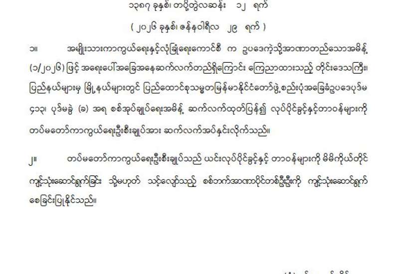 ဝန်ကြီးဌာန ကြေညာချက်များ