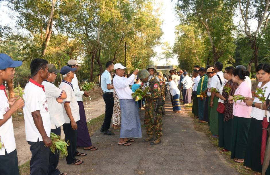 တိုင်းဒေသကြီးနှင့် ပြည်နယ်အသီးသီးရှိ တိုင်းရင်းသားပြည်သူများ စိတ်အေးချမ်းသာစွာ နေထိုင်လုပ်ကိုင်စားသောက်နိုင်ရေးနှင့် အသက်အိုးအိမ်စည်းစိမ်ဥစ္စာလုံခြုံမှုရှိစေရေး၊ နိုင်ငံတော်တည်ငြိမ်ရေး၊ နယ်မြေအေးချမ်းရေးအတွက် ရှေ့တန်းစစ်မျက်နှာများတွင် စစ်ဆင်ရေးတာဝန်များကို မိဝေးဖဝေး၊ မိသားစုများနှင့် ဝေးကွာ၍ နေ့မအား ညမနား စွမ်းစွမ်းတမံတာဝန်ထမ်းဆောင်ခဲ့ပြီး ရွပ်ရွပ်ချွံချွံတိုက်ပွဲဝင်၍ အောင်ပွဲအလီလီရယူနိုင်ခဲ့သော အောင်ပွဲရရှေ့တန်းပြန် တပ်မတော်သားများအား တိုင်းမှူးနှင့် တာဝန်ရှိသူများ၊ ဒေသခံပြည်သူများ၊ ကျောင်းသား/ကျောင်းသူများက အောင်သပြေခက်များဖြင့်လည်းကောင်း၊ ဘင်ခရာ၊ အတီး၊ အမှုတ်၊ အကအလှများဖြင့်လည်းကောင်း ဝမ်းမြောက်စွာ သောင်းသောင်းဖြဖြကြိုဆိုဂုဏ်ပြုခဲ့ကြပြီး တိုင်းမှူးက အောင်ပွဲရရှေ့တန်းပြန်တပ်မတော်သားများအား ဂုဏ်ပြုချီးမြှင့်ငွေများ ပေးအပ်ခဲ့ကြောင်း သတင်းရရှိသည်။