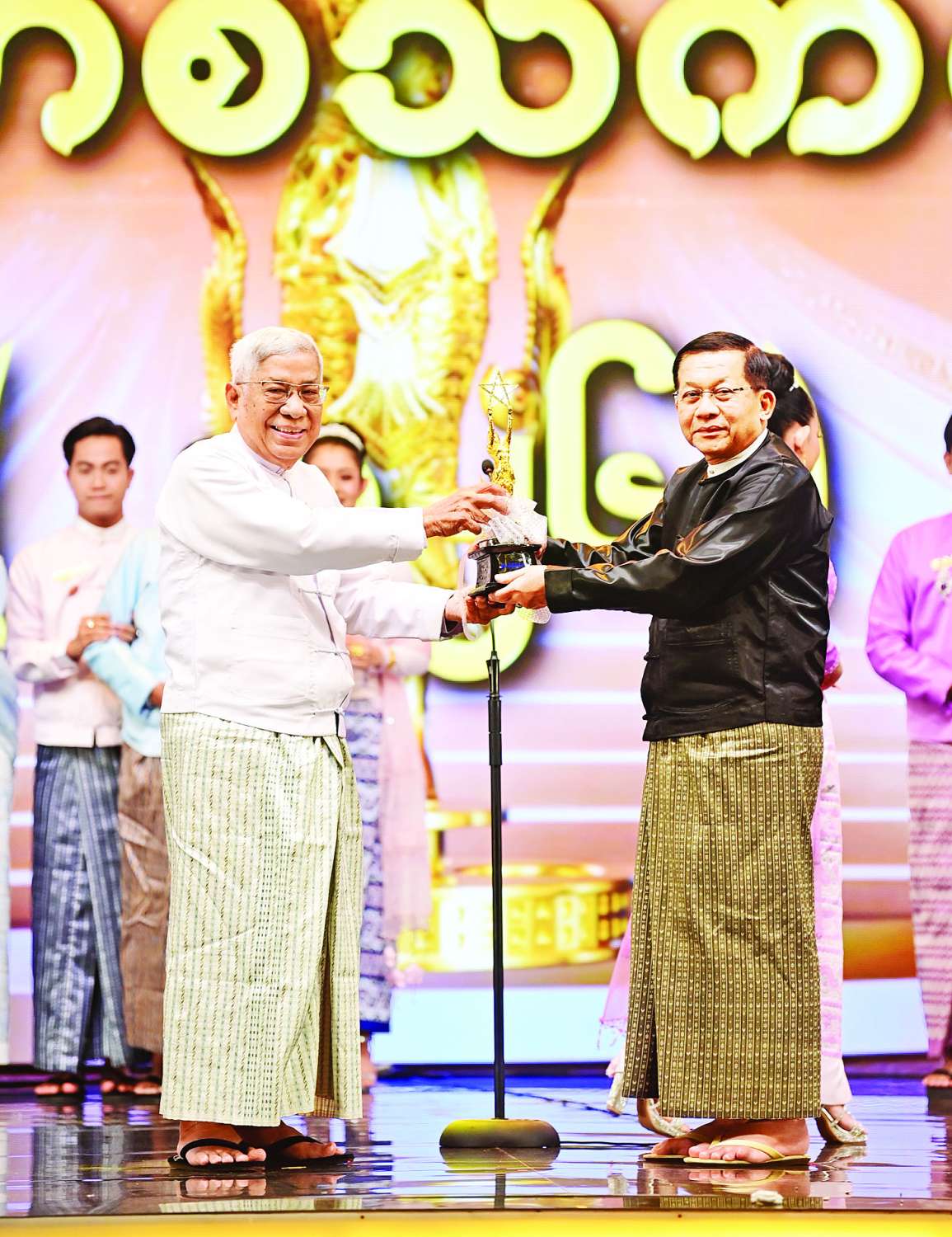 ဆက်လက်၍ နိုင်ငံတော်ယာယီသမ္မတ နိုင်ငံတော်လုံခြုံရေးနှင့် အေးချမ်းသာယာရေးကော်မရှင်ဥက္ကဋ္ဌက မြန်မာနိုင်ငံရုပ်ရှင်အစည်းအရုံးနှင့် အနုပညာရှင်၊ အတတ်ပညာရှင်များအပါအဝင် ရုပ်ရှင်လောကသားအားလုံးက လှိုက်လှဲဂုဏ်ယူစွာ ချီးမြှင့်သည့် ရုပ်ရှင်တစ်သက်တာထူးချွန်ဆုရရှိကြသော ဦးဌေးအောင် (ဆွေဗမာ)၊ သရုပ်ဆောင် ဒေါ်ခင်လေးဆွေနှင့် ဒါရိုက်တာ အကယ်ဒမီ ဦးကြည်စိုးထွန်းတို့ကို ဆုများပေးအပ်ချီးမြှင့်ပြီး မှတ်တမ်းတင်စုပေါင်းဓာတ်ပုံရိုက်ကြသည်။