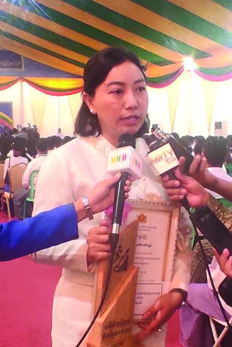 မနှစ်ကတော့ နေပြည်တော်ကောင်စီကိုယ်စားပြုပြီး OROP နဲ့ ဒေသတစ်ခု ထုတ်ကုန်တစ်ခုအနေနဲ့ ဆုရရှိခဲ့တာဖြစ်ပါတယ်။ အခုနှစ်မှာ ဆုထပ်ပြီး ရရှိခဲ့တဲ့အတွက် ဂုဏ်ယူဝမ်းသာရပါတယ်။ ဒီဆုက ကျွန်မတစ်ယောက်တည်းကြိုးစားလို့ ရရှိခဲ့တာမဟုတ်ပါဘူး။ ကျွန်မတို့ အခုလိုလုပ်ငန်းတိုးတက်ဖို့၊ ကျွန်မတို့လို MSME လုပ်ငန်းတွေ ဖွံ့ဖြိုးတိုးတက်ဖို့ အဘက်ဘက်ကနေပံ့ပိုးပေးတဲ့ နိုင်ငံတော်အကြီးအကဲရဲ့ လမ်းညွှန်အားပေးမှုနဲ့အတူ လုပ်ငန်းမှာ လက်တွဲအတူလုပ်ကိုင်တဲ့ တောင်သူဦးကြီးတွေ အားလုံးကြောင့် ရခဲ့တဲ့ဆုပါ။