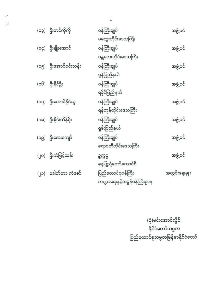 မြန်မာနိုင်ငံတော်ဗဟိုဘဏ်၏ ဒါရိုက်တာအဖွဲ့ဝင်များ ခန့်အပ်တာဝန်ပေးခြင်း