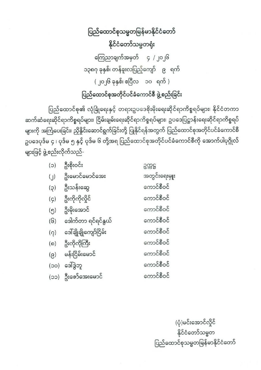 မြန်မာနိုင်ငံတော်ဗဟိုဘဏ်၏ ဒါရိုက်တာအဖွဲ့ဝင်များ ခန့်အပ်တာဝန်ပေးခြင်း