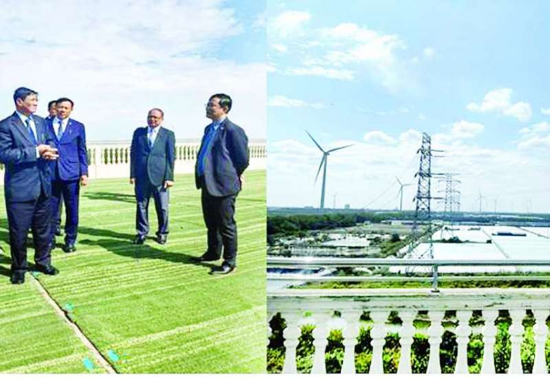 တရုတ်ပြည်သူ့သမ္မတနိုင်ငံ စူးကျိုးမြို့သို့ရောက်ရှိနေသော လျှပ်စစ်စွမ်းအားဝန်ကြီးဌာန ပြည်ထောင်စုဝန်ကြီး ဦးဉာဏ်ထွန်းဦးဆောင်သော မြန်မာကိုယ်စားလှယ်အဖွဲ့သည် ယမန်နေ့က ကျန်းစုပြည်နယ် ရုဒုံမြို့ ဟွန်ကျန်းပင်လယ်ကွေ့အပြင်ဘက်ရှိ ဒီရေတောကမ်းခြေတွင် China Longyuan Power Group Corporation Limited မှ တည်ဆောက်ထား သော ကုန်းတွင်း၊ ဒီရေတောနှင့် ကမ်းလွန်တို့တွင် တပ်ဆင်အင်အား ၄၈၀ မဂ္ဂါဝပ်ရှိသည့် Ru Dong Huan Gang Offshore Wind Farm ကမ်းလွန်လေအားလျှပ်စစ်စက်ရုံသို့ သွားရောက်လေ့လာကြသည်။