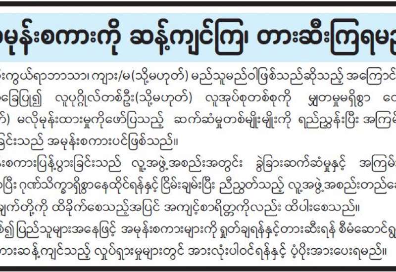 ဆိုင်ကလုန်းမုန်တိုင်း(မိုခါ)တိုက်ခတ်မှုကြောင့် ပျက်စီးမှုများ ဖြစ်ပေါ်ခဲ့သည့် စစ်တွေမြို့ရှိ မုန်တိုင်းဒဏ်သင့် ဒေသခံပြည်သူများနှင့် ဌာနဆိုင်ရာဝန်ထမ်းများ၏ စားသောက်ရေးအဆင်ပြေစေရန်နှင့် မိမိတို့အလိုရှိရာ စားသောက်ကုန်ပစ္စည်းများကို ဈေးနှုန်းသက်သာစွာဖြင့် ဝယ်ယူစားသောက်နိုင်ရေးအတွက် အနောက်ပိုင်းတိုင်း စစ်ဌာနချုပ်၊ နယ်မြေခံတပ်မတော်သားများနှင့် တာဝန်ရှိသူများက နေ့စဉ်ရောင်းချပေးလျက်ရှိသည်။