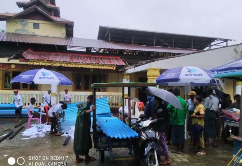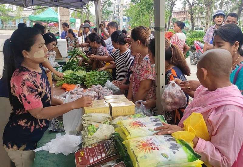 ဆိုင်ကလုန်းမုန်တိုင်း(မိုခါ)တိုက်ခတ်မှုကြောင့် ပျက်စီးမှုများဖြစ်ပေါ်ခဲ့သည့် စစ်တွေမြို့ရှိ မုန်တိုင်းဒဏ်သင့် ဒေသခံပြည်သူများနှင့် ဌာနဆိုင်ရာဝန်ထမ်းများ၏ စားသောက်ရေး အဆင်ပြေစေရန်နှင့် မိမိတို့အလိုရှိရာ စားသောက်ကုန်ပစ္စည်းများကို ဈေးနှုန်းသက်သာစွာဖြင့် ဝယ်ယူ စားသောက်နိုင်ရေးအတွက် အနောက်ပိုင်းတိုင်း စစ်ဌာနချုပ်၊ နယ်မြေခံတပ်မတော်သားများနှင့် တာဝန်ရှိသူများက နေ့စဉ်ရောင်းချပေးလျက်ရှိသည်။