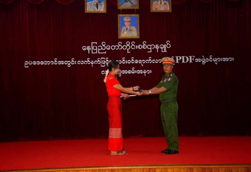 နိုင်ငံတော်စီမံအုပ်ချုပ်ရေးကောင်စီသည် PDF အပါအဝင် အဖွဲ့အစည်း အမျိုးမျိုးအမည်ခံ၍ လက်နက်ကိုင်ဆန့်ကျင်လျက်ရှိသည့် အဖွဲ့အစည်းများအတွင်း ရောက်ရှိနေသူများအား ဥပဒေဘောင်အတွင်းသို့ ပြန်လည်ဝင်ရောက်ရန် ဖိတ်ခေါ်လျက်ရှိပြီး ဥပဒေဘောင်အတွင်းသို့ ဝင်ရောက်လာသူများကိုလည်း လိုအပ်သည့် ကူညီပံ့ပိုးမှုများ ဆောင်ရွက်ပေးသွားမည်ဖြစ်ကြောင်းနှင့် လက်နက်/ခဲယမ်းများဖြင့် ဝင်ရောက်လာသူများကို ဆုကြေးငွေများ သီးသန့်ထောက်ပံ့ ပေးသွားမည်ဖြစ်ကြောင်း သတင်းထုတ်ပြန်ခဲ့ပြီး ဖြစ်သည်။