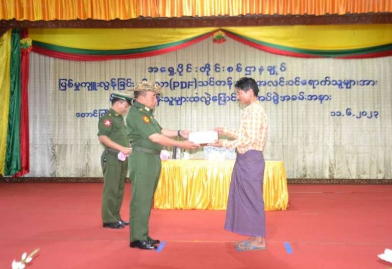နိုင်ငံတော်စီမံအုပ်ချုပ်ရေးကောင်စီသည် PDF အပါအဝင် အဖွဲ့အစည်းအမျိုးမျိုးအမည်ခံ၍ လက်နက်ကိုင်ဆန့်ကျင်လျက်ရှိသည့် အဖွဲ့အစည်းများအတွင်း ရောက်ရှိနေသူများအား ဥပဒေဘောင်အတွင်းသို့ ပြန်လည်ဝင်ရောက်ရန် ဖိတ်ခေါ်လျက်ရှိပြီး ဥပဒေဘောင်အတွင်းသို့ ဝင်ရောက်လာသူများကိုလည်း လိုအပ်သည့် ကူညီပံ့ပိုးမှုများဆောင်ရွက်ပေးသွားမည်ဖြစ်ကြောင်းနှင့် လက်နက်/ ခဲယမ်းများဖြင့် ဝင်ရောက်လာသူများကို ဆုကြေးငွေများ သီးသန့်ထောက်ပံ့ ပေးသွားမည်ဖြစ်ကြောင်း သတင်းထုတ်ပြန်ခဲ့ပြီးဖြစ်သည်။