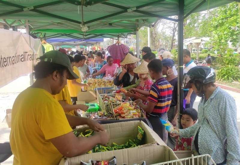 ဆိုင်ကလုန်းမုန်တိုင်း (မိုခါ)တိုက်ခတ်မှုကြောင့် ပျက်စီးဆုံးရှုံးမှုများဖြစ်ပေါ်ခဲ့သည့် စစ်တွေမြို့ရှိ မုန်တိုင်းဒဏ်သင့် ဒေသခံပြည်သူများနှင့် ဌာနဆိုင်ရာ ဝန်ထမ်းများ၏ စားသောက်ရေး အဆင်ပြေစေရန်နှင့် မိမိတို့အလိုရှိရာ စားသောက်ကုန်ပစ္စည်းများကို ဈေးနှုန်းသက်သာစွာဖြင့် ဝယ်ယူစားသောက်နိုင်ရေးအတွက် အနောက်ပိုင်း တိုင်းစစ်ဌာနချုပ်၊ နယ်မြေခံတပ်မတော်သားများနှင့် တာဝန်ရှိသူများက