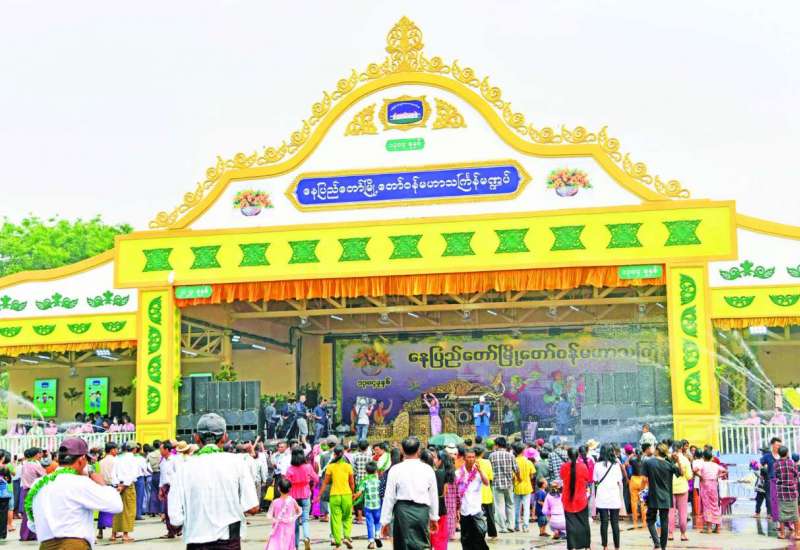 ယနေ့ကျရောက်သည့် မြန်မာ့ရိုးရာ မဟာသင်္ကြန်အကျနေ့တွင် ပို့ဆောင်ရေးနှင့်ဆက်သွယ်ရေးဝန်ကြီးဌာန မြန်မာ့မီးရထား နေပြည်တော် ဘူတာကြီးဝင်းအတွင်းရှိ မြန်မာ့ရိုးရာ အတာသင်္ကြန်ရေကစားမဏ္ဍပ်သို့ နိုင်ငံတော်စီမံအုပ်ချုပ်ရေးကောင်စီအဖွဲ့ဝင်များ၊ ဝန်ကြီးဌာနများမှ ပြည်ထောင်စုဝန်ကြီးများနှင့်ဇနီးများ၊ ပို့ဆောင်ရေးနှင့်ဆက်သွယ်ရေး ဝန်ကြီးဌာနမှ အကြီးအကဲများနှင့်ဇနီးများ၊ တာဝန်ရှိသူများ၊ ဝန်ထမ်းများ၊ ဝန်ထမ်းမိသားစုများနှင့် နေပြည်တော်နယ်မြေအတွင်းရှိ ပြည်သူ များ လာရောက်၍ ယဉ်ကျေးပျော်ရွှင်စွာဖြင့် ရေကစားလျက်ရှိပြီး ကျန်းမာရေးဝန်ကြီးဌာန၊ နေပြည်တော်ကောင်စီ၊ ကာကွယ်ရေးဦးစီးချုပ်ရုံး(ရေ)နှင့် ပို့ဆောင်ရေးနှင့် ဆက်သွယ်ရေးဝန်ကြီးဌာနများမှ ယိမ်းအဖွဲ့များနှင့် အနုပညာရှင်များက ဖျော်ဖြေခဲ့ကြကြောင်းနှင့် ရေကစားမဏ္ဍပ်အား နေ့စဉ်နံနက် ၈ နာရီခွဲမှ ၁၁ နာရီခွဲအထိနှင့် မွန်းလွဲ ၃ နာရီ မှ ညနေ ၆ နာရီခွဲအထိ ဖွင့်လှစ်ထားရှိကြောင်း သိရသည်။