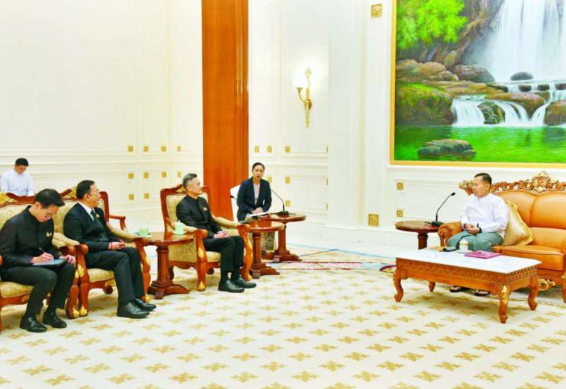 ပြည်ထောင်စုသမ္မတမြန်မာနိုင်ငံတော် ယာယီသမ္မတ နိုင်ငံတော်လုံခြုံရေးနှင့်အေးချမ်းသာယာရေးကော်မရှင်ဥက္ကဋ္ဌ ဗိုလ်ချုပ်မှူးကြီး မင်းအောင်လှိုင်သည် တာဝန်ပြီးဆုံး၍ ပြန်လည်ထွက်ခွာမည့် မြန်မာနိုင်ငံဆိုင်ရာ ထိုင်းနိုင်ငံသံအမတ်ကြီး H.E. Mr. Mongkol Visiststump အား ယနေ့မွန်းလွဲပိုင်းတွင် နေပြည်တော်ရှိ အမျိုးသားကာကွယ်ရေးနှင့်လုံခြုံရေးကောင်စီရုံး၊ ဧည့်ခန်းမ၌ လက်ခံတွေ့ဆုံသည်။