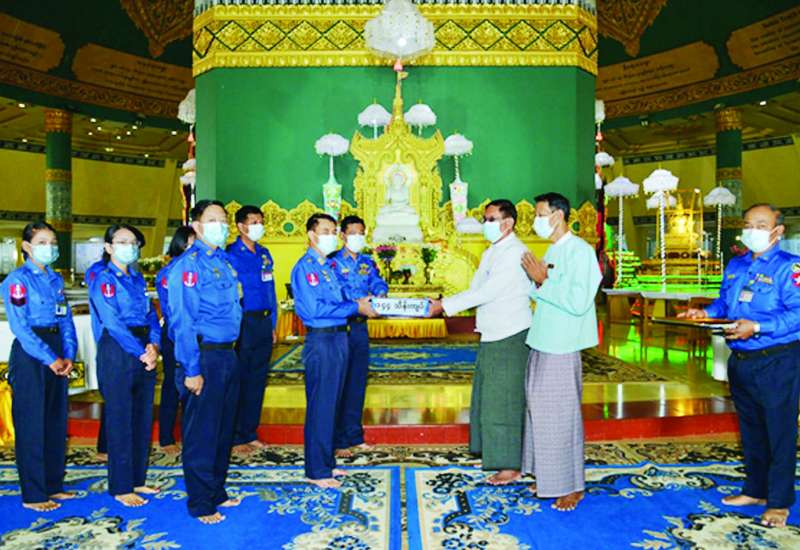 (၇၅)နှစ်မြောက် စိန်ရတုတပ်မတော် (ရေ) နှစ်ပတ်လည်နေ့အား ကြိုဆိုဂုဏ်ပြုသောအားဖြင့် နိုင်ငံတော်အတွင်း ဘာသာသာသနာထွန်းကားမှုကို အထောက်အပံ့ဖြစ်စေရန်နှင့် အများပြည်သူများ ကြည်ညိုသပ္ပာယ်စွာဖူးမြော်ရန်၊ ကုသိုလ်တရားပွားများနိုင်စေရန်ရည်ရွယ်၍ ကာကွယ်ရေးဦးစီးချုပ် (ရေ) ဗိုလ်ချုပ်ကြီးမိုးအောင်နှင့်ဇနီး ဒေါက်တာဒေါ်အေးခိုင်ညွန့်နှင့် တပ်မတော်(ရေ)မှ အရာရှိ၊ စစ်သည် မိသားစုဝင်များက ဥပ္ပါတသန္တိစေတီတော်မြတ်ကြီး၏ ပထမဖောင်းရစ်အတွက် ရွှေစင်ပြားကိုးပြား ဆက်ကပ်လှူဒါန်းပွဲအခမ်းအနားကို ယနေ့နံနက်ပိုင်းတွင် နေပြည်တော်ကောင်စီနယ်မြေရှိ ဥပ္ပါတသန္တိစေတီတော်မြတ်ကြီး၏ လိုဏ်ဂူတော် အရှေ့ဘက်မုခ်၌ ကျင်းပသည်။