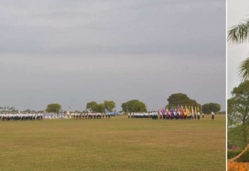 (၇၅)နှစ်မြောက်၊ စိန်ရတုတပ်မတော်(လေ)နှစ်ပတ်လည်နေ့အထိမ်းအမှတ် ဂုဏ်ပြုစစ်ရေးပြအခမ်းအနားအား ယနေ့နံနက်ပိုင်းတွင် မိတ္ထီလာတပ်နယ်ရှိ လေကြောင်းအတတ်သင်လေတပ်စခန်းဌာနချုပ်၌ ကျင်းပပြုလုပ်ရာ ကာကွယ်ရေးဦးစီးချုပ်(လေ) ဗိုလ်ချုပ်ကြီးထွန်းအောင်၊ အငြိမ်းစားကာကွယ်ရေးဦးစီးချုပ်(လေ)များ၊ လေတပ်စခန်းဌာနချုပ်မှူးများ၊ မိတ္ထီလာတပ်နယ်မှ အရာရှိ၊ စစ်သည်များနှင့် ဖိတ်ကြားထားသူများ တက်ရောက်ကြသည်။