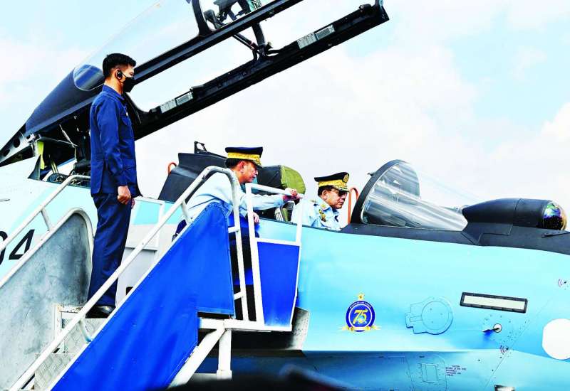 ပြည်ထောင်စုသမ္မတမြန်မာနိုင်ငံတော်၊ တပ်မတော်(လေ)၏ (၇၅)နှစ်မြောက် စိန်ရတုနှစ်ပတ်လည်နေ့အခမ်းအနားတွင် နိုင်ငံတော်နှင့် တပ်မတော်၏ လေကြောင်းစွမ်းပကား မြင့်မားစေရန်အတွက် လေယာဉ်၊ ရဟတ်ယာဉ်များ တပ်တော်ဝင်ခြင်းအခမ်းအနားကို ယနေ့နံနက်ပိုင်းတွင် မိတ္ထီလာတပ်နယ်ရှိ လေကြောင်းအတက်သင် လေတပ်စခန်းဌာနချုပ်၌ ကျင်းပပြုလုပ်ရာ နိုင်ငံတော်စီမံအုပ်ချုပ်ရေးကောင်စီဥက္ကဋ္ဌ တပ်မတော်ကာကွယ်ရေးဦးစီးချုပ် ဗိုလ်ချုပ်မှူးကြီးမင်းအောင်လှိုင် တက်ရောက်ချီးမြှင့်သည်။