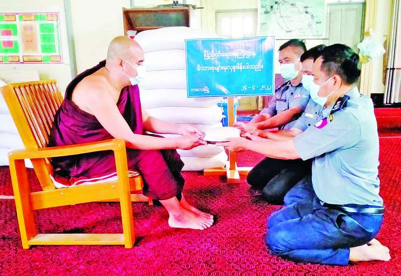 ပြည်ထဲရေးဝန်ကြီးဌာန တပ်ဖွဲ့ဝင်/ ဝန်ထမ်း အရာထမ်း၊ အမှုထမ်း မိသားစုများက မြို့နယ်အသီးသီးရှိ ဘုန်းတော်ကြီးကျောင်းများသို့ ဆွမ်းဆန်တော်များ ဆက်ကပ်လှူဒါန်းခြင်းကို ဆောင်ရွက်လျက်ရှိသည်။