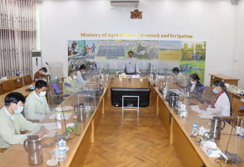 ကိုဗစ်-၁၉ ကပ်ရောဂါဖြစ်ပွားမှုကြောင့် ထိခိုက်ခြင်း အပေါ် ပြန်လည်ကုစားရေး ဆောက်လုပ်ရေး ဝန်ကြီးဌာန၏ ဆောင်ရွက်ထားရှိမှုအခြေအနေ ရှင်းလင်း တင်ပြခြင်းနှင့် ဝန်ကြီးဌာနအားလုံး တစ်ပြေးညီ ဖြစ်စေရေး ညှိနှိုင်းအစည်းအဝေးကို ယနေ့ မွန်းလွဲ ၃နာရီတွင်နေပြည်တော် ဆောက်လုပ်ရေးဝန်ကြီးဌာန စုဝေးခန်းမဆောင်၌ ကိုဗစ် -၁၉ ရောဂါ ညွှန်ကြား ချက်များနှင့်အညီ ကျင်းပသည်။