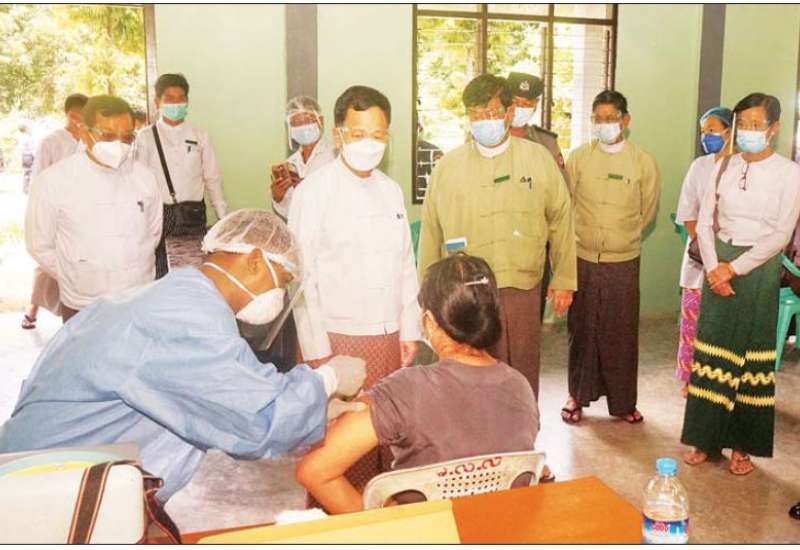 ပြည်ထောင်စုနယ်မြေ နေပြည်တော်တွင် ကိုဗစ်-၁၉ ရောဂါ ကာကွယ်ဆေးများ ထိုးနှံပေးလျက်ရှိရာ နေပြည်တော်ကောင်စီ ဥက္ကဋ္ဌ ဒေါက်တာမောင်မောင်နိုင်၊ ကောင်စီအဖွဲ့ဝင်များနှင့် တာဝန်ရှိသူများ သည် ယနေ့နံနက်ပိုင်းက ပျဉ်းမနားမြို့ အမှတ်(၃) အခြေခံပညာအထက်တန်းကျောင်းရှိ ကာကွယ်ဆေး ထိုးနှံရေး စင်တာတွင် ကာကွယ်ဆေးထိုးနှံပေးနေမှု ကြည့်ရှုအားပေးသည်။
