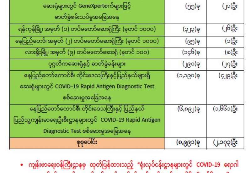 ကျန်းမာရေးဝန်ကြီးဌာနအနေဖြင့် နိုင်ငံအတွင်း ကူးစက်ဖြစ်ပွားနေသော COVID-19 ရောဂါကာကွယ်၊ ကုသ၊ ထိန်းချုပ်ရေးလုပ်ငန်းများကို အရှိန်အဟုန်မြှင့်ဆောင်ရွက်လျက်ရှိရာ ရောဂါထိန်းချုပ်ရေး လုပ်ငန်းများ အောင်မြင်နိုင်ရေးအတွက် ပြည်သူလူထုအနေဖြင့် -