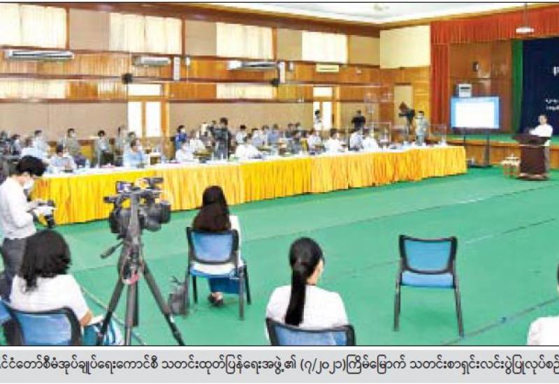 နိုင်ငံတော်စီမံအုပ်ချုပ်ရေးကောင်စီ သတင်း ထုတ်ပြန်ရေးအဖွဲ့ ၏ ၇/၂၀၂၁ ကြိမ်မြောက် သတင်းစာရှင်းလင်းပွဲအခမ်းအနားကို ဇူလိုင် ၁၂ ရက် နံနက်ပိုင်းတွင် ပြန်ကြားရေးဝန်ကြီးဌာန၌ ကျင်းပ ပြုလုပ်ပြီး နိုင်ငံတော်စီမံအုပ်ချုပ်ရေးကောင်စီ သတင်းထုတ်ပြန်ရေးအဖွဲ့ ခေါင်းဆောင် ဗိုလ်ချုပ် ဇော်မင်းထွန်း၊ ပြည်ထောင်စုရွေးကောက်ပွဲ ကော်မရှင်အဖွဲ့ဝင် ဦးခင်မောင်ဦးနှင့် ဌာနဆိုင်ရာ ကိုယ်စားလှယ်များက သတင်းမီဒီယာများ ၏သိရှိလို သည့် မေးမြန်းမှုများကို ပြန်လည်ဖြေကြားသည်။