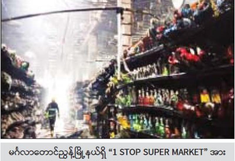 ရန်ကုန်တိုင်းဒေသကြီး၊ ဗဟန်းမြို့နယ်၊ မင်္ဂလာတောင်ညွှန့်မြို့နယ်၊ ကျောက်တံတားမြို့နယ် များတွင် ဖွင့်လှစ်ထားရှိသော “1 STOP SUPER MARKET” ဆိုင်များအား အကြမ်းဖက်သူများက မီးရှို့ ဖျက်ဆီးမှုများ ပြုလုပ်ခဲ့ကြောင်း သိရသည်။
