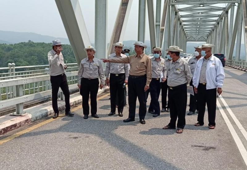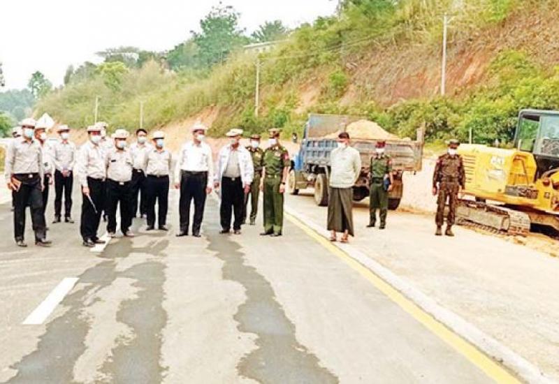 ဆောက်လုပ်ရေးဝန်ကြီးဌာန ပြည်ထောင်စုဝန်ကြီး ဦးရွှေလေးသည် တြိဂံဒေသတိုင်းစစ်ဌာနချုပ် တိုင်းမှူး ဗိုလ်မှူးချုပ် မျိုးမင်းထွန်းနှင့်အတူ ဧပြီ ၂၃ ရက် မွန်းလွဲပိုင်းတွင် ရှမ်းပြည်နယ် (အရှေ့ပိုင်း) ကျိုင်းတုံခရိုင် တွင် ကျေးလက်လမ်းဖွံ့ဖြိုးရေးဦးစီးဌာနမှ မဟာဗျူဟာမြောက်စီမံကိန်းဖြင့် ဆောင်ရွက်သည့် နောင်ငင်းဝမ်ဆိုင်း (လွယ်) လမ်း ကွန်ကရစ်ခင်းခြင်းလုပ်ငန်းများ ဆောင်ရွက်ထားရှိမှုကို လမ်းတစ်လျှောက် ကြည့်ရှု စစ်ဆေးသည်။