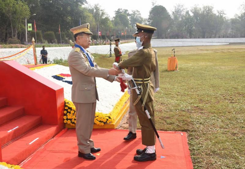 တပ်မတော်(ကြည်း) ဗိုလ်သင်တန်းကျောင်း(ဗထူး)၊ ဗိုလ်လောင်းသင်တန်း အမှတ်စဉ်(၁၂၄) သူရတပ်ခွဲ သင်တန်းဆင်း ဂုဏ်ပြုစစ်ရေးပြအခမ်းအနားကို ယနေ့ နံနက်ပိုင်းတွင် ဗထူးတပ်မြို့ရှိ အဆိုပါဗိုလ် သင်တန်းကျောင်း စစ်ရေးပြကွင်း၌ ကျင်းပ ပြုလုပ်ရာ နိုင်ငံတော်စီမံအုပ်ချုပ်ရေးကောင်စီဥက္ကဋ္ဌ၊ တပ်မတော် ကာကွယ်ရေး ဦးစီး ချုပ် ဗိုလ်ချုပ်မှူးကြီး မဟာသရေစည်သူ မင်းအောင်လှိုင် ကိုယ်စား နိုင်ငံတော် စီမံ အုပ်ချုပ်ရေး ကောင်စီဒုတိယဥက္ကဋ္ဌ ဒုတိယတပ်မတော်ကာကွယ်ရေးဦးစီးချုပ် ကာကွယ်ရေး ဦးစီးချုပ်(ကြည်း) ဒုတိယ ဗိုလ်ချုပ်မှူးကြီး သရေစည်သူ စိုးဝင်း တက်ရောက် မိန့်ခွန်း ပြောကြားသည်။