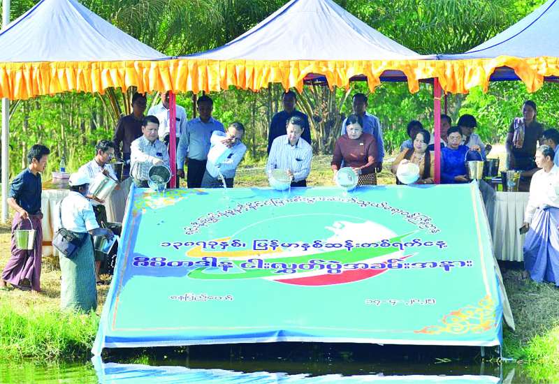 ပြည်ထောင်စု စာရင်းစစ်ချုပ်ရုံး ဇီဝိတဒါန ငါးမျိုးစိုက်ထည့်ပွဲကို ယနေ့နံနက် ၉ နာရီခွဲတွင် နေပြည်တော် ပရဆေးဥယျာဉ်ရှေ့ရှိ မင်္ဂလာကန်တော်၌ကျင်းပရာ ပြည်ထောင်စုစာရင်းစစ်ချုပ် ဒေါက်တာခင်နိုင်ဦး၊ အမြဲတမ်း အတွင်းဝန်၊ ညွှန်ကြားရေးမှူးချုပ်များနှင့် တာဝန်ရှိသူများသည် နေပြည်တော် ပရဆေးဥယျာဉ် ရှေ့ရှိ မင်္ဂလာကန်တော်အတွင်းသို့ နှစ်သစ်မင်္ဂလာအဖြစ် ငါးကြင်း သားပေါက်များ မျိုးစိုက်ထည့်ပြီး ကုသိုလ်ပြုခဲ့ကြသည်။