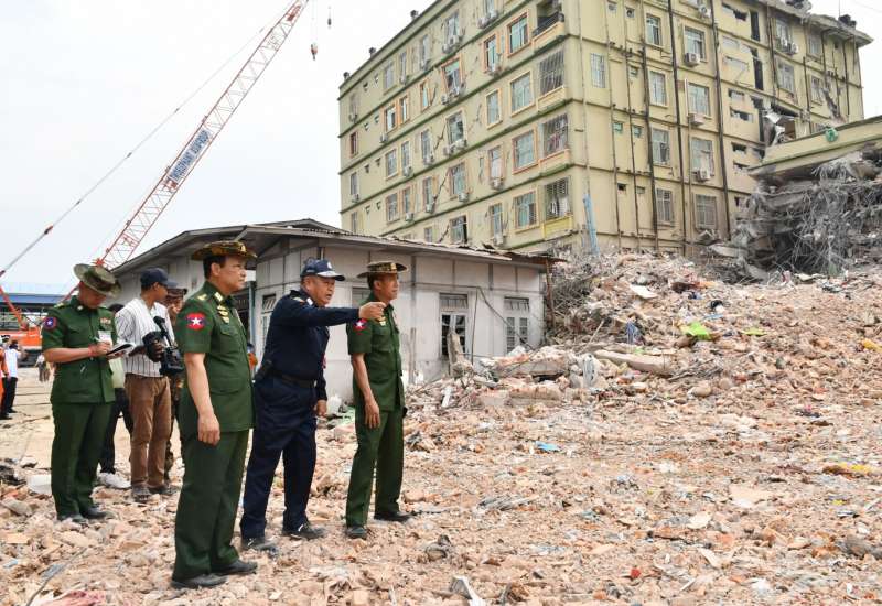မြန်မာနိုင်ငံတွင်လှုပ်ခတ်ခဲ့သော မန္တလေးငလျင်ကြီးကြောင့် လမ်းတံတား၊ အဆောက်အဦများ ထိခိုက်ပျက်စီးခဲ့ရသည့်နေရာများ၌ ကူညီကယ်ဆယ်ရေးလုပ်ငန်းများကို တိုင်းစစ်ဌာနချုပ်အသီးသီးမှ တပ်မတော်သားများ၊ မြန်မာနိုင်ငံရဲတပ်ဖွဲ့ဝင်များ၊ မီးသတ်တပ်ဖွဲ့ဝင်များ၊ ပြည်ပနိုင်ငံများမှ ကူညီကယ်ဆယ်ရေးအဖွဲ့များ၊ ဌာနဆိုင်ရာဝန်ထမ်းများ၊ လူမှုကူညီရေးအသင်း/အဖွဲ့များနှင့် ဒေသခံပြည်သူများပူးပေါင်း၍ အချိန်နှင့်တစ်ပြေးညီ ကူညီဆောင်ရွက်ပေးလျက်ရှိသည်။