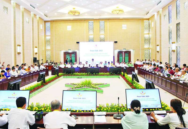 “တွေ့ဆုံဆွေးနွေးမှုများမှ ငြိမ်းချမ်းသော နိုင်ငံတော်သစ်ဆီသို့”ဆောင်ပုဒ်ဖြင့် ငြိမ်းချမ်းရေးစကားဝိုင်း - Peace Talk 2025 ကို ယနေ့နံနက်ပိုင်းတွင် နေပြည်တော်ရှိ အမျိုးသားစည်းလုံးညီညွတ်ရေးနှင့် ငြိမ်းချမ်းရေးဖော်ဆောင်မှုဗဟိုဌာန၌ ကျင်းပသည်။