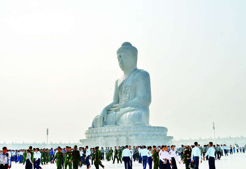 နှစ်(၈၀)ပြည့်တပ်မတော်နေ့ စစ်ရေးပြအခမ်းအနားတွင် ပါဝင်သည့် စစ်ရေးပြစစ်ကြောင်းများမှ တပ်မတော် (ကြည်း၊ ရေ၊ လေ)အရာရှိ၊ စစ်သည်များ၊ တပ်မတော်(ကြည်း) အမျိုးသမီးစစ်ရေးပြ တပ်ခွဲ၊ မြန်မာနိုင်ငံရဲတပ်ဖွဲ့ဝင်များနှင့် မြန်မာနိုင်ငံရဲတပ်ဖွဲ့အမျိုးသမီး စစ်ရေးပြတပ်ခွဲတို့သည် ယနေ့နံနက်ပိုင်းတွင် ပြည်ထောင်စုနယ်မြေ နေပြည်တော်ဒက္ခိဏသီရိမြို့နယ်ရှိ ဗုဒ္ဓဥယျာဉ်ဝတ္ထုကံတော်တွင် တည်ထားပူဇော်သည့် ကမ္ဘာပေါ်ရှိ ထိုင်တော်မူကျောက်ဆစ်ဗုဒ္ဓရုပ်ပွားတော်များအနက် ဉာဏ်တော်အမြင့်ဆုံးဖြစ်သည့် မာရဝိဇယဗုဒ္ဓရုပ်ပွားတော် မြတ်ကြီးအားသွားရောက်ဖူးမြော် ကြည်ညိုကြသည်။