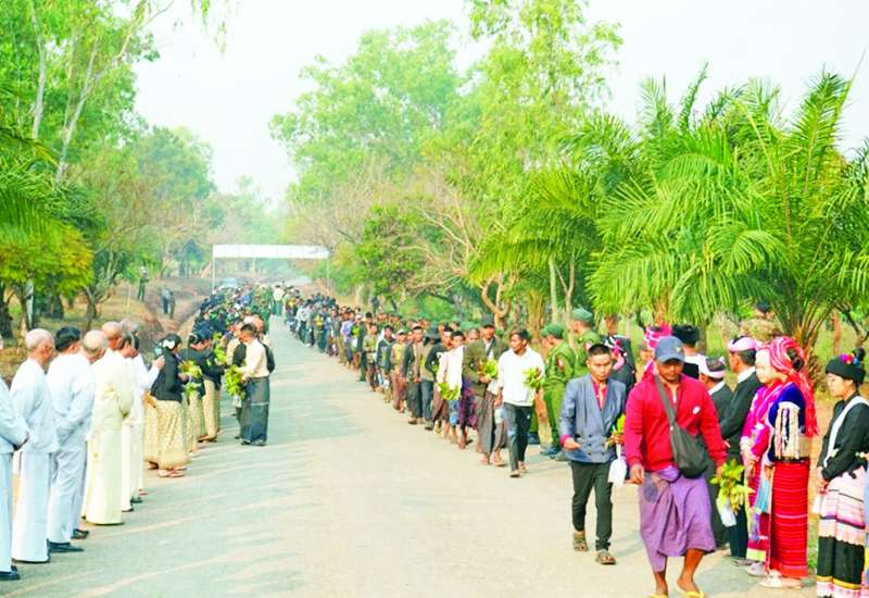 ရှမ်းပြည်နယ်အတွင်းရှိ ပြည်သူ့စစ်မှုထမ်းသင်တန်းအမှတ်စဉ် (၁၁) သို့ တက်ရောက်ကြမည့် နိုင်ငံ့သားကောင်းရတနာများအား ကြိုဆိုပွဲကို ယနေ့နံနက်ပိုင်းတွင် ကျိုင်းတုံမြို့ရှိ နယ်မြေခံသင်တန်းကျောင်း၌ပြုလုပ်ရာ တြိဂံဒေသတိုင်းစစ်ဌာနချုပ် တိုင်းမှူးဗိုလ်မှူးချုပ်စိုးလှိုင်နှင့် တာဝန်ရှိသူများ၊ အရာရှိ၊ စစ်သည်၊ မိသားစုဝင်များ၊ မြန်မာနိုင်ငံရဲတပ်ဖွဲ့ဝင်များ၊ စစ်မှုထမ်းဟောင်းအဖွဲ့ဝင်များ၊ ဌာနဆိုင်ရာတာဝန်ရှိသူများ၊ တိုင်းရင်းသားယဉ်ကျေးမှုအဖွဲ့များနှင့် ဒေသခံတိုင်းရင်းသားပြည်သူများ တက်ရောက်ကြသည်။