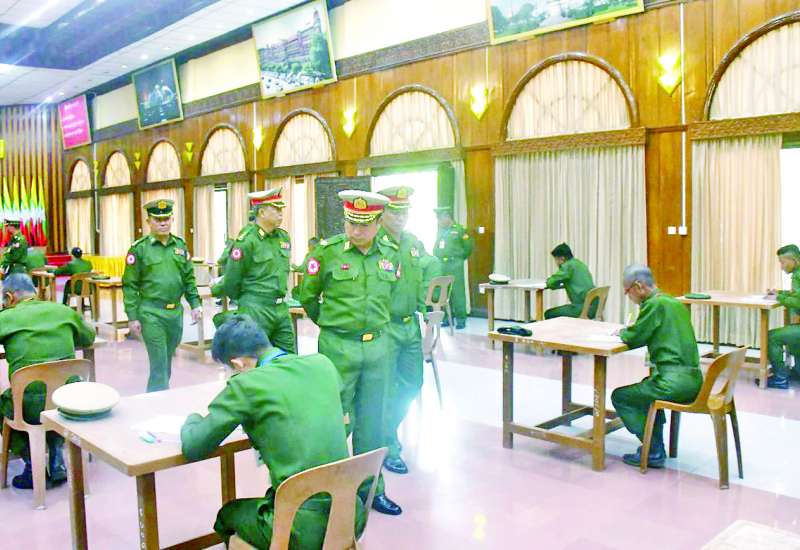၂၀၂၅ ခုနှစ် နှစ် (၈၀) ပြည့် တပ်မတော်နေ့ အထိမ်းအမှတ် စစ်သည်တော်ကျင့်ဝတ်ပြိုင်ပွဲကို ယနေ့နံနက်ပိုင်းတွင် ရန်ကုန်တိုင်းစစ်ဌာနချုပ် အနော်ရထာခန်းမ၌ ပြုလုပ်ရာ တိုင်းမှူး ဗိုလ်မှူးချုပ် ပြည့်စုံလင်းနှင့် တာဝန်ရှိသူများက အရာရှိ၊ အရာခံ၊ အကြပ်အဆင့် စစ်သည်တော်ကျင့်ဝတ်ရေးဖြေနှင့် တပ်သားအဆင့် ရေးဖြေ၊ နှုတ်ဖြေ ဖြေဆိုနေမှုများကို လိုက်လံကြည့်ရှုအားပေးကြသည်။