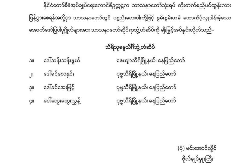 မြန်မာနိုင်ငံသည် ထေရဝါဒဗုဒ္ဓဘာသာနိုင်ငံများတွင် သာသနာတော် အထွန်းကားဆုံးနိုင်ငံဖြစ်သည်။ သာသနာတော်သန့်ရှင်းတည်တံ့ပြန့်ပွားရေးအတွက် စိတ်ပါဝင်စားပြီး စွမ်းစွမ်းတမံထမ်းဆောင်နိုင်ကြသည့် ဗျတ္တ၊ ပဋိဗလပြည့်စုံသော ဆရာတော်များ အများအပြားရှိသည်။ ယခုအခါ အဋ္ဌမအကြိမ် နိုင်ငံတော်သံဃမဟာ နာယကအဖွဲ့ ခြောက်နှစ်သက်တမ်းပြည့်ပြီဖြစ်၍ ဆရာတော်ကြီးများ အစားထိုးရွေးချယ်ရာတွင် နိုင်ငံတော်သံဃမဟာနာယကအဖွဲ့ဥက္ကဋ္ဌ ဆရာတော်ကြီးက အထူးလျှောက်ထားခဲ့သည်။