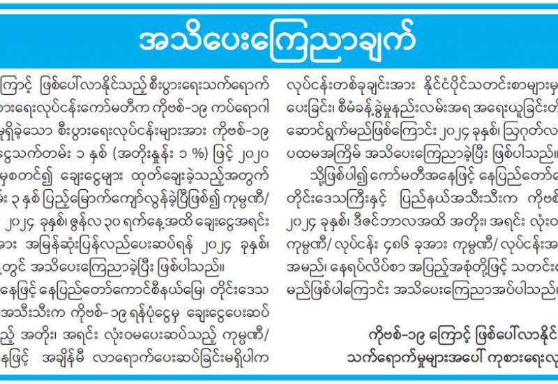 ရန်ကုန်မြို့နှင့် မန္တလေးမြို့အတွက် ရည်ညွှန်းလက်ကားဈေးနှုန်းများနှင့် ပြည်ထောင်စုနယ်မြေ နေပြည်တော်၊ တိုင်းဒေသကြီး/ပြည်နယ် မြို့တော်များအတွက် ရည်ညွှန်းလက်လီဈေးနှုန်းများ