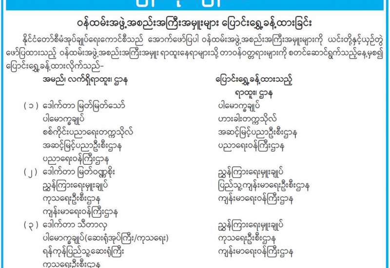 ၁။ ပြန်ကြားရေးဝန်ကြီးဌာနအနေဖြင့် ပုံနှိပ်ခြင်းနှင့်ထုတ်ဝေခြင်းလုပ်ငန်းနည်းဥပဒေများ ထွက်ရှိသည့် ၁၀-၁၀-၂၀၁၄ ရက်နေ့မှစ၍ ပုံနှိပ်ခြင်း၊ ထုတ်ဝေခြင်းနှင့် သတင်းအေဂျင်စီလုပ်ငန်း အသိအမှတ်ပြုလက်မှတ်များအား ၅ နှစ် သက်တမ်းခွင့်ပြုပေးခဲ့ပါသည်။