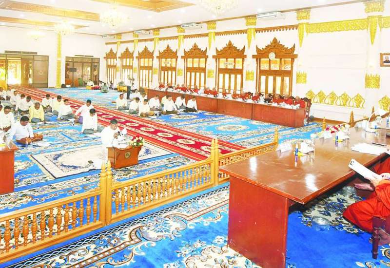အဋ္ဌမအကြိမ် နိုင်ငံတော်သံဃမဟာနာယကအဖွဲ့ ၄၇ ပါးစုံညီ ဧကူနဝီ သတိမ အစည်းအဝေးပထမနေ့ကို ယနေ့နံနက်ပိုင်းတွင် ရန်ကုန်မြို့ သီရိမင်္ဂလာကမ္ဘာအေးကုန်းမြေ ဝိဇယမင်္ဂလာဓမ္မသဘင်တွင် ကျင်းပသည်။